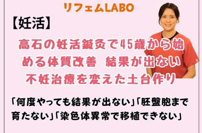 高石の妊活鍼灸で45歳から始める体質改善 結果が出ない不妊治療を変えた土台作り