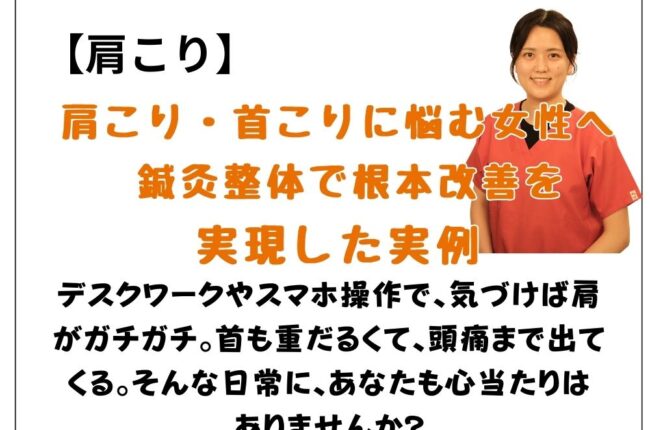 肩こり・首こりに悩む女性へ 鍼灸整体で根本改善を実現した実例